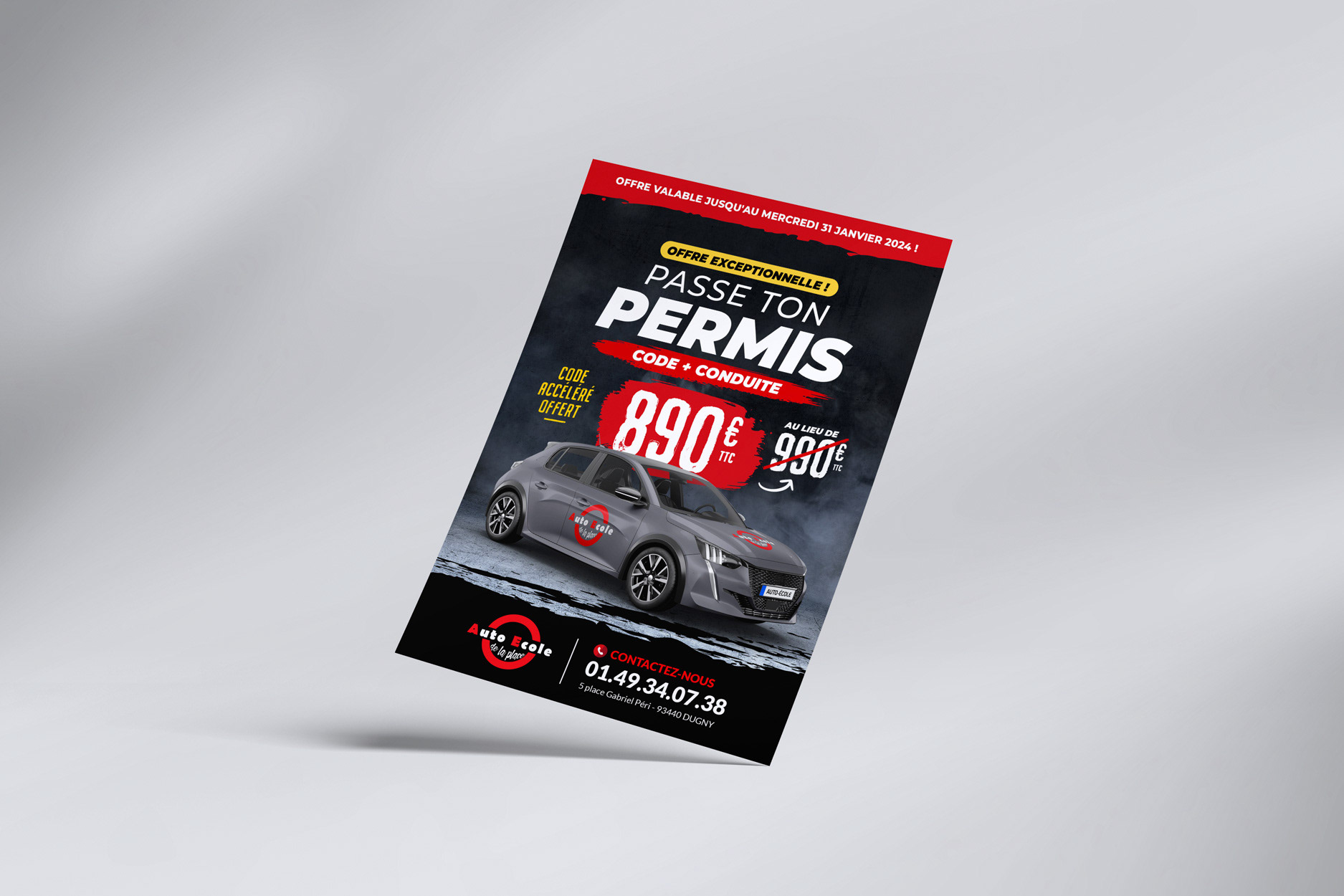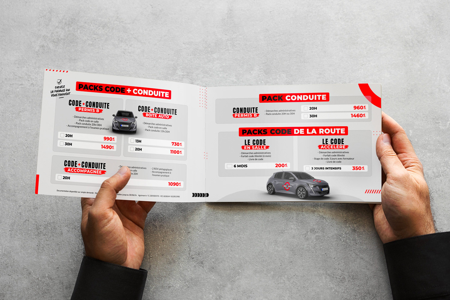 Brochure et flyer réalisé pour l'Auto-école de la Place à Dugny en Île-de-France.