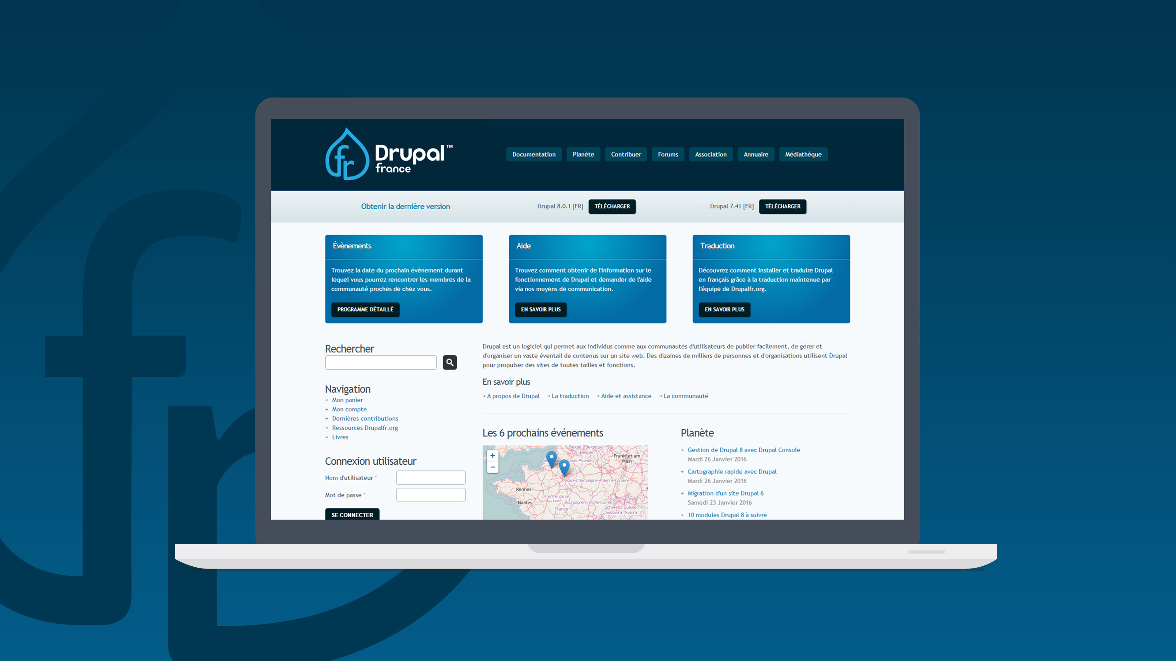 Création du logo Drupal France. Participation au concours pour la refonte du logo de Drupal France. Drupal est un système de gestion de contenu (CMS) gratuit et open-source. Gagnant du concours avec ce logo.