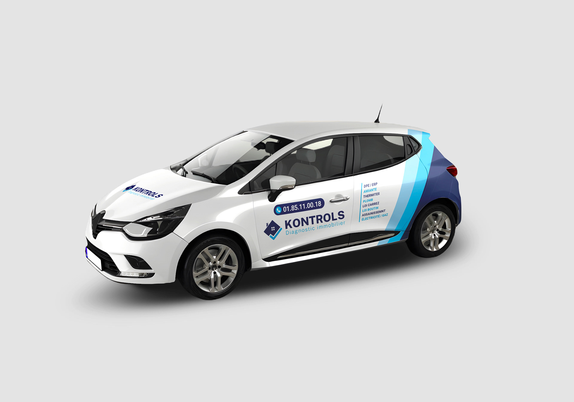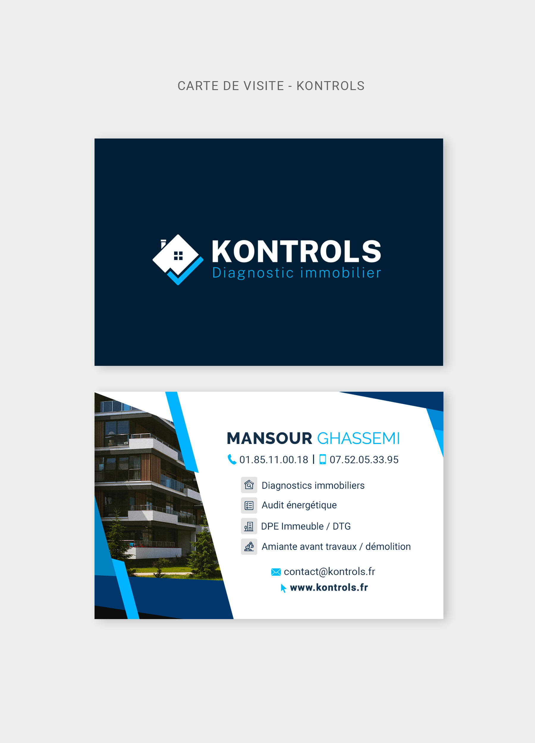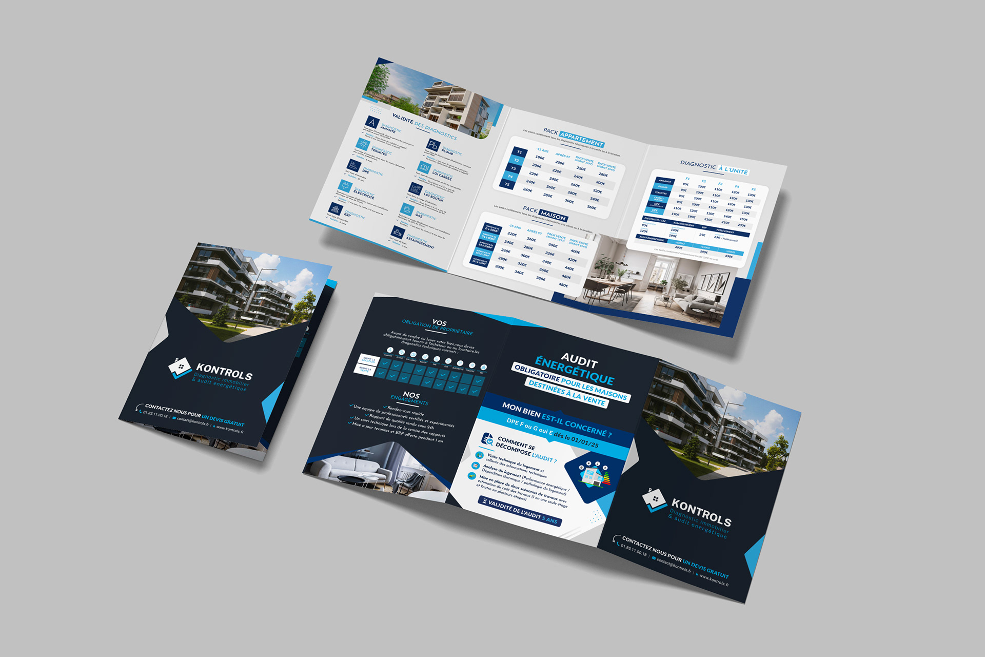 Création d'un dépliant 6 pages, d'un covering et des cartes de visite pour la société Kontrols | Diagnostic Immobilier