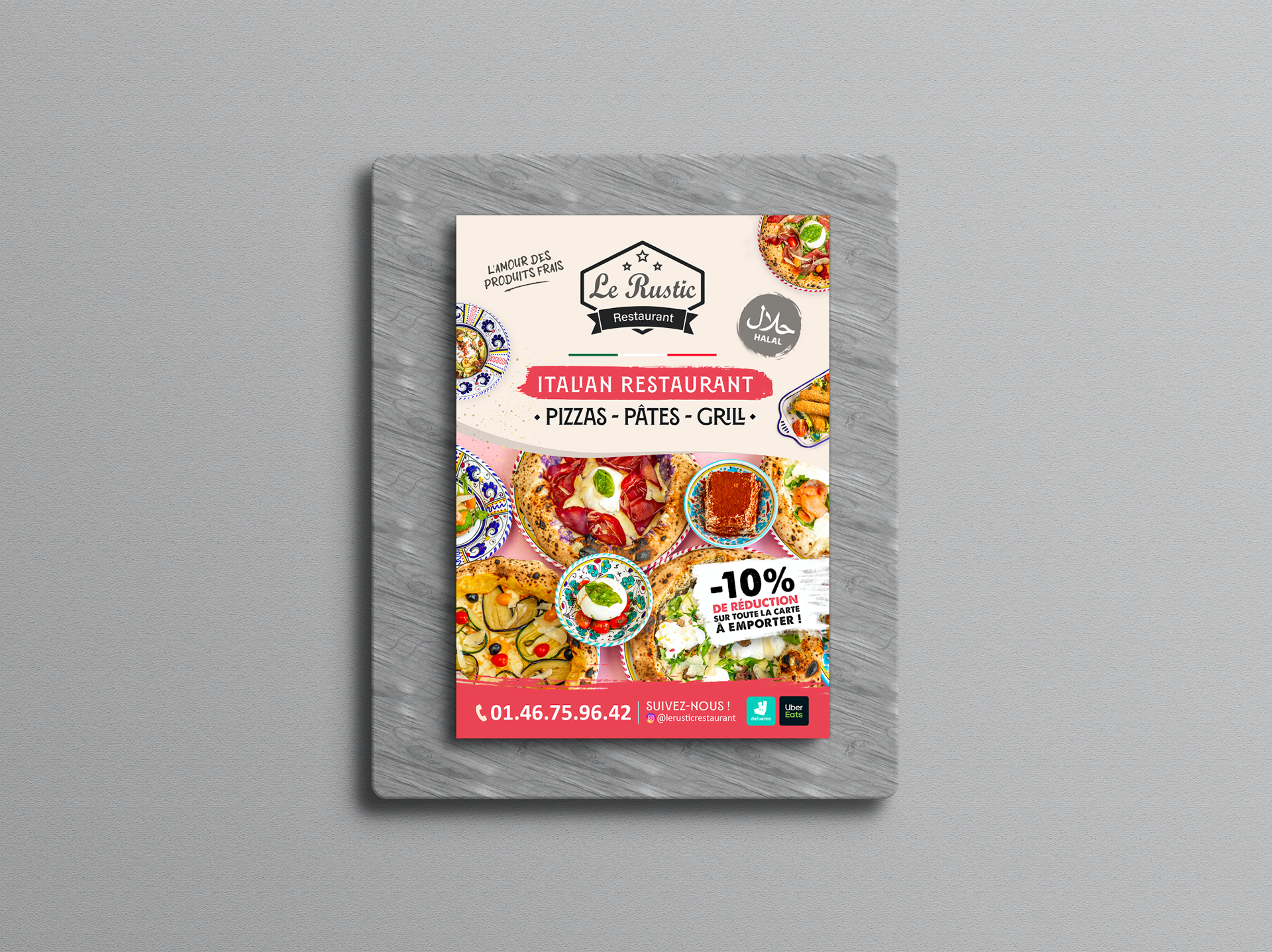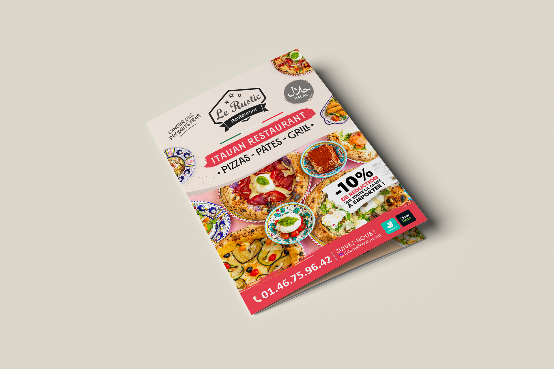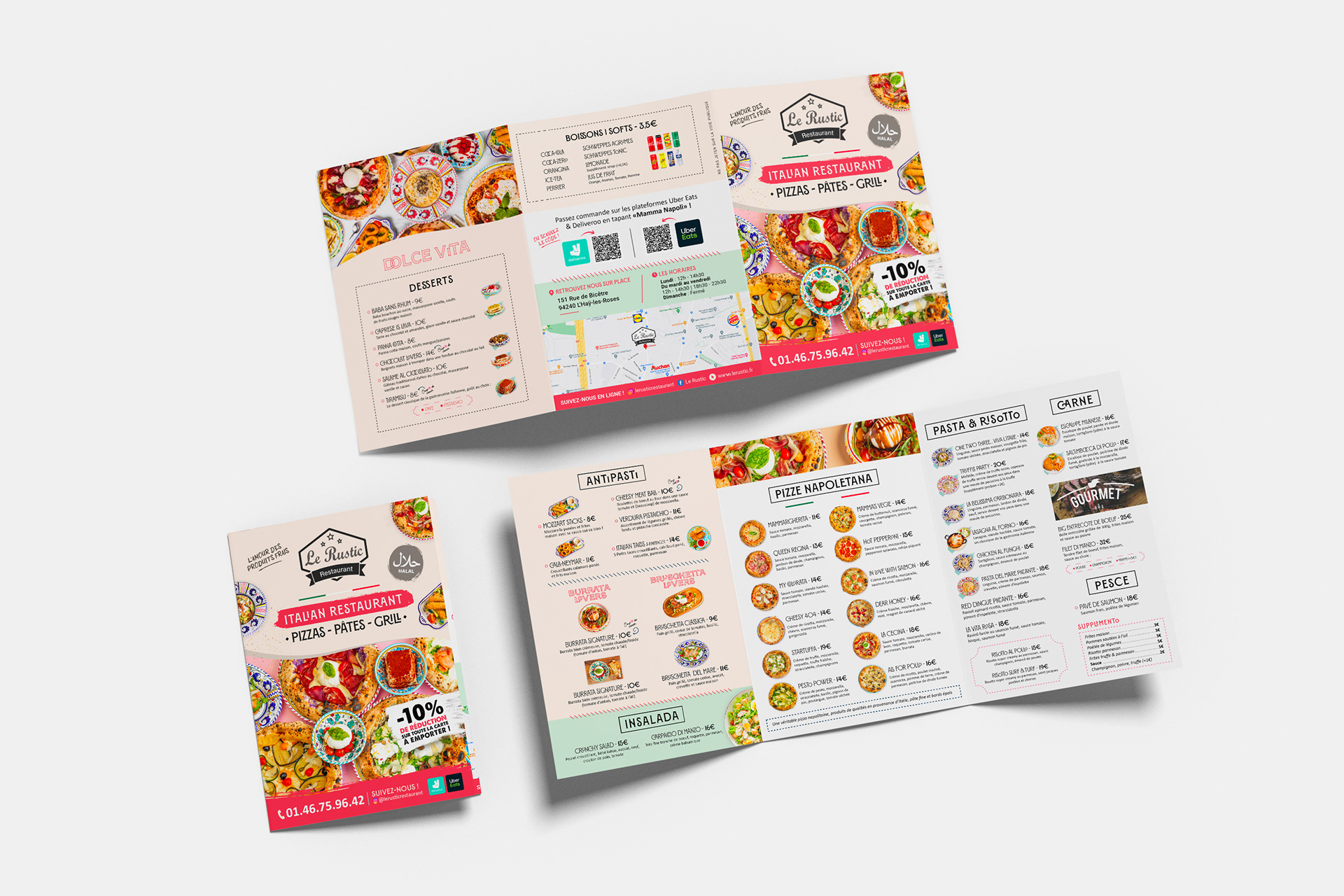 Menu réalisé pour Le Rustic Restaurant | Spécialités italiennes
