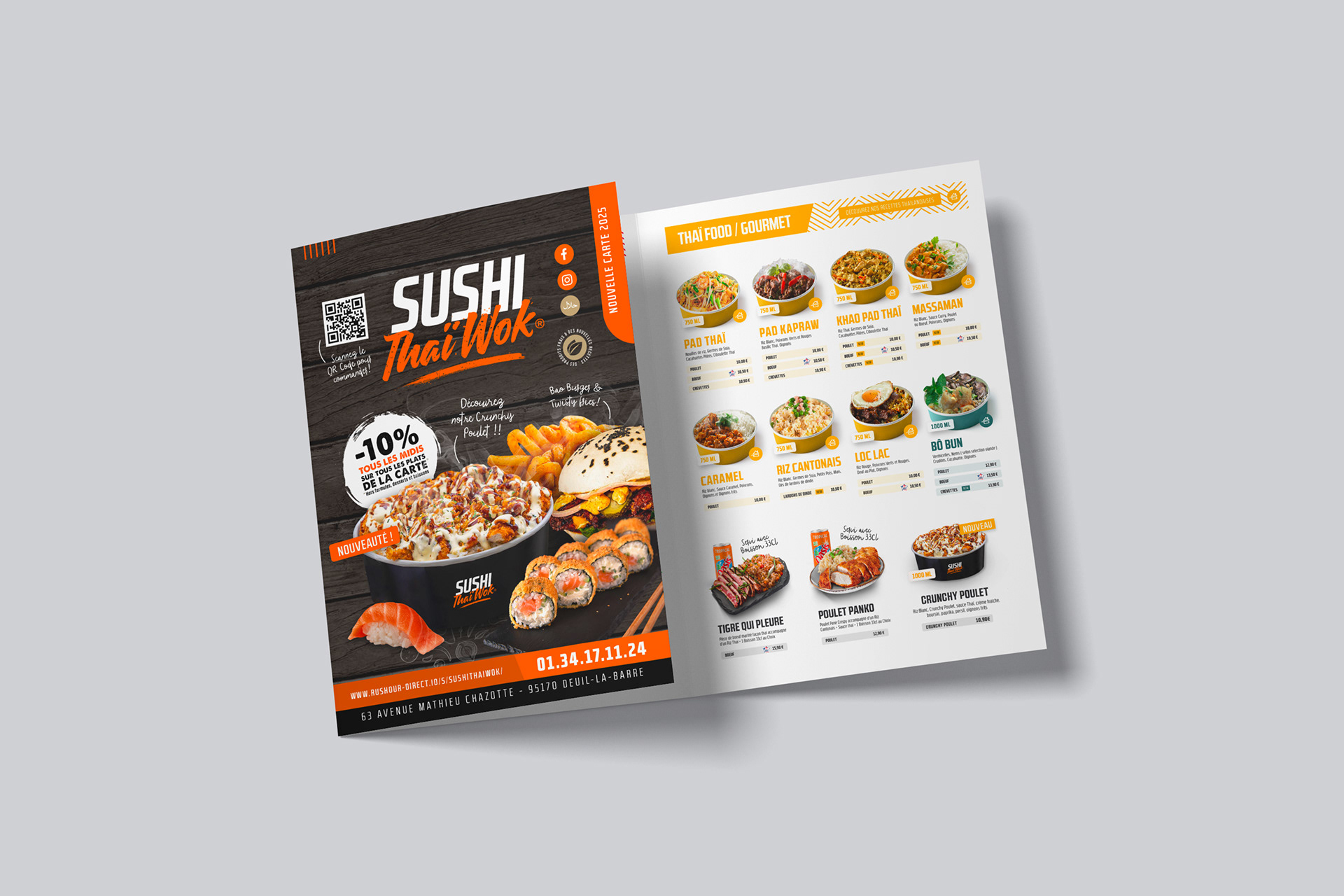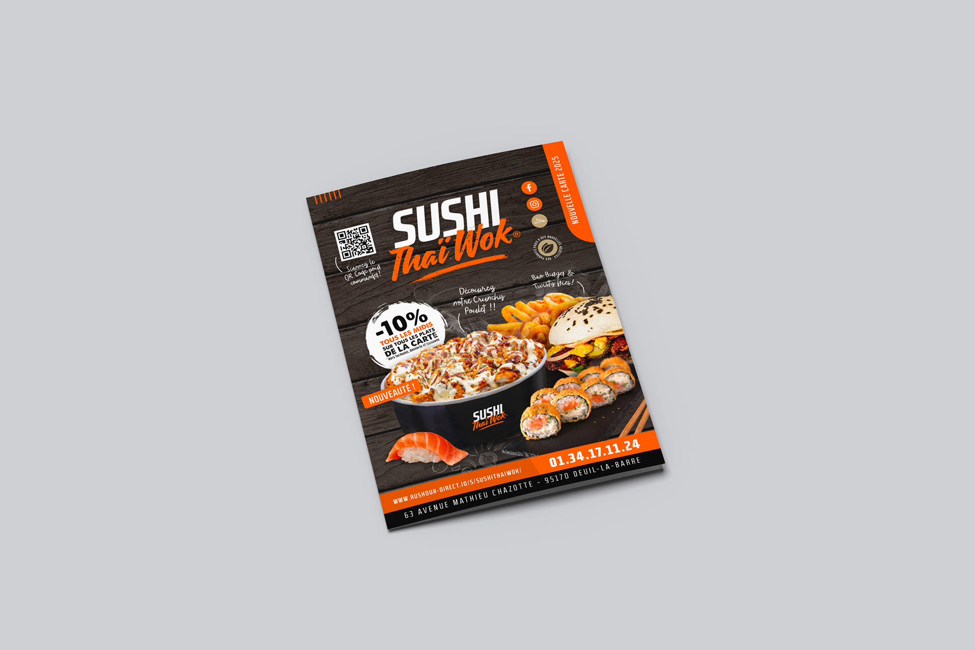 Dépliant 6 pages réalisé pour le restaurant Sushi Thaï Wok.